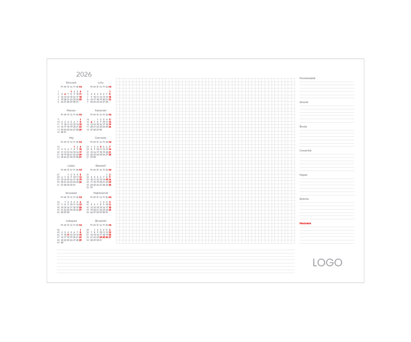 • Kalendarium: język PL, dwie wersje kolorystyczne: