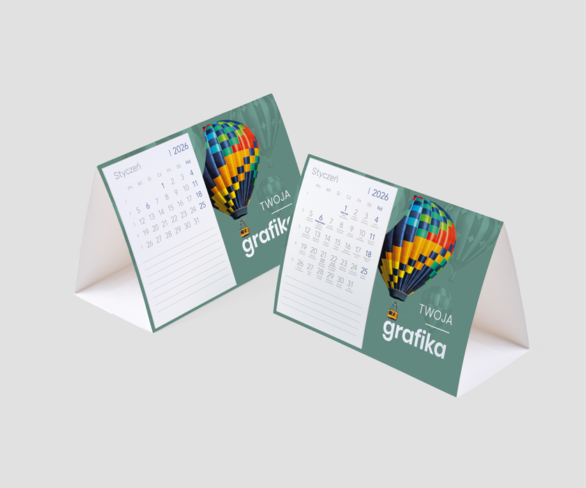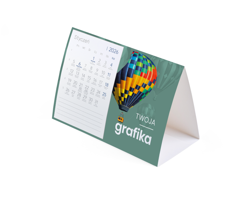 - Indywidualna grafika zostanie umieszczona zarówno na podstawie, jak i na kartkach kalendarza.
